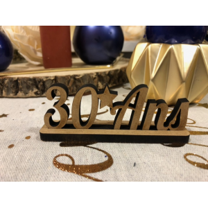 CENTRE DE TABLE - 30 ans x 3 (en bois sur support 9.5cm x 3cm)