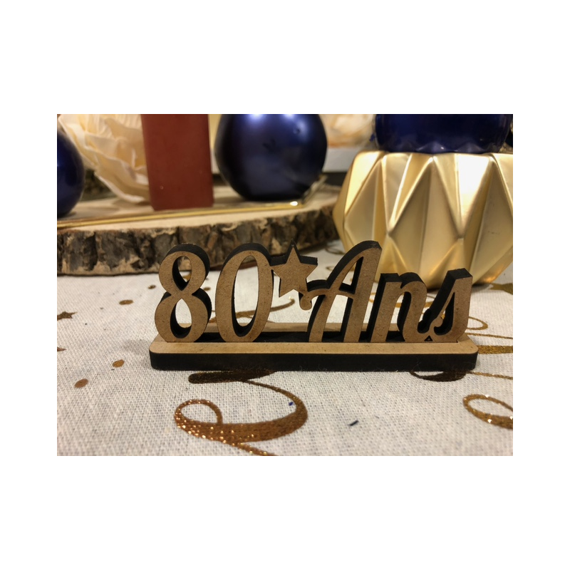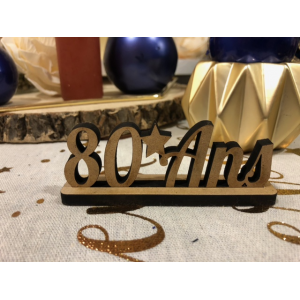 CENTRE DE TABLE - 80 ans x 3 (en bois sur support 9.5cm x 3cm)