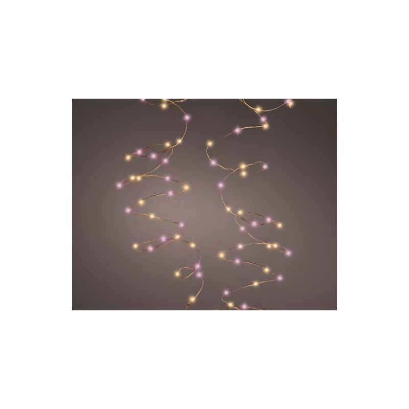 GUIRLANDE LUMINEUSE - Microled rose et or/ fil argent ETANCHE (12m 240 leds)
