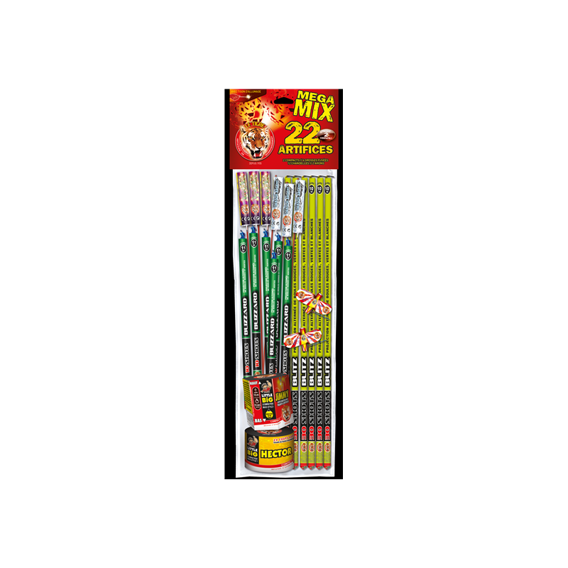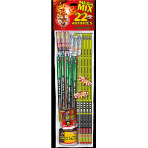 Assortiment de 22 petits artifices ludiques avec chandelles, hélicoptères, fusées et compacts