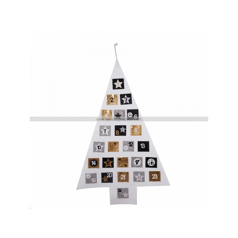 CALENDRIER DE L'AVENT - Blanc avec pochettes argent/or/gris (96cm)