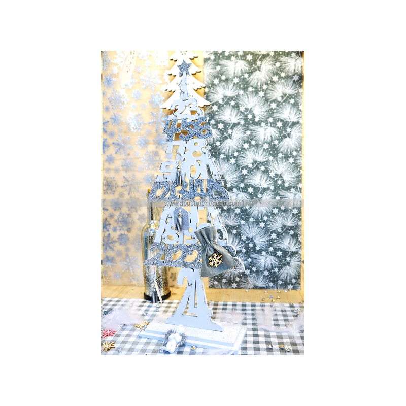 CALENDRIER DE L'AVENT - Sapin bleu et argent (en bois 60cm)