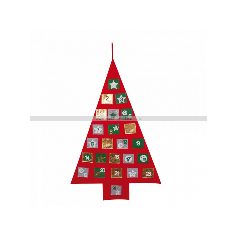 CALENDRIER DE L'AVENT - Rouge avec pochettes vert/or/gris (96cm)