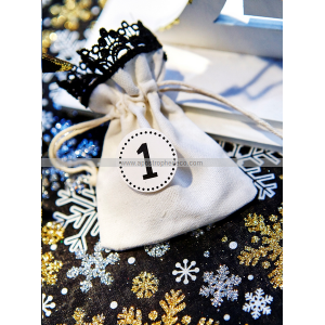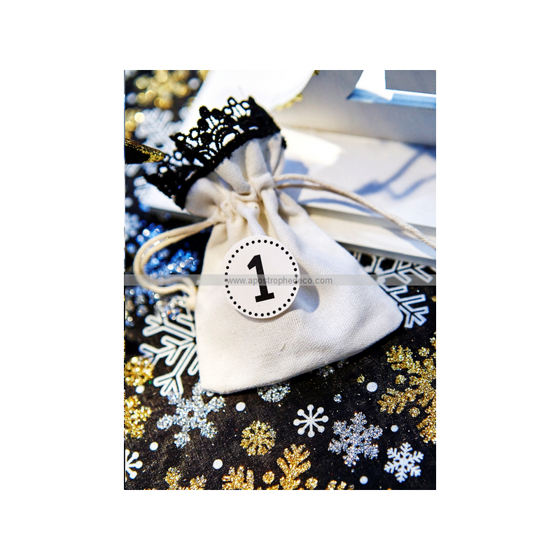 CALENDRIER DE L'AVENT - Stickers/autocollant noir et blanc x 24 (3cm)