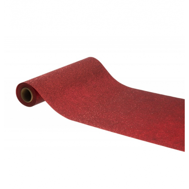 CHEMIN DE TABLE - Rouge pailleté LUXE (en tissu 30cm x 5m)