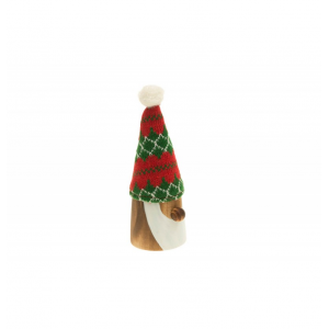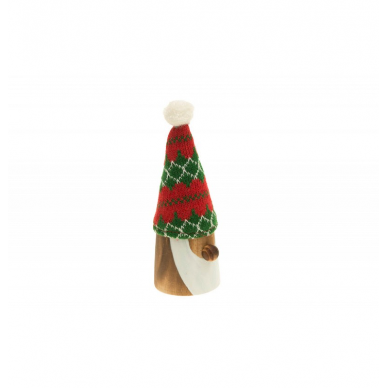PERE NOEL - En bois avec tricot vert foncé et rouge (14cm)