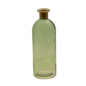 BOUTEILLE/FLACON - Vert olive avec goulot or/doré (en verre 20cm)