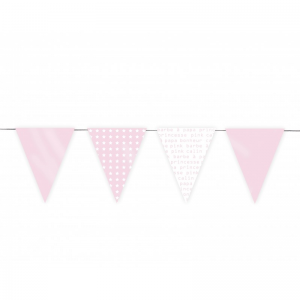 GUIRLANDE Guinguette rose pastel et blanc (12 fanions en carton 3m)