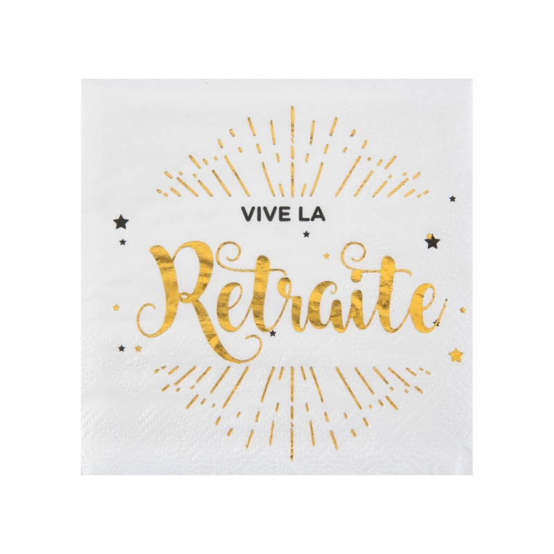 SERVIETTE - Vive la retraite blanc et or x 20 (33cm x 33cm)