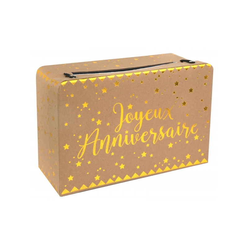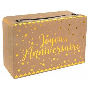 URNE/TIRELIRE - Joyeux anniversaire kraft/or (en carton 16cm x 24cm)