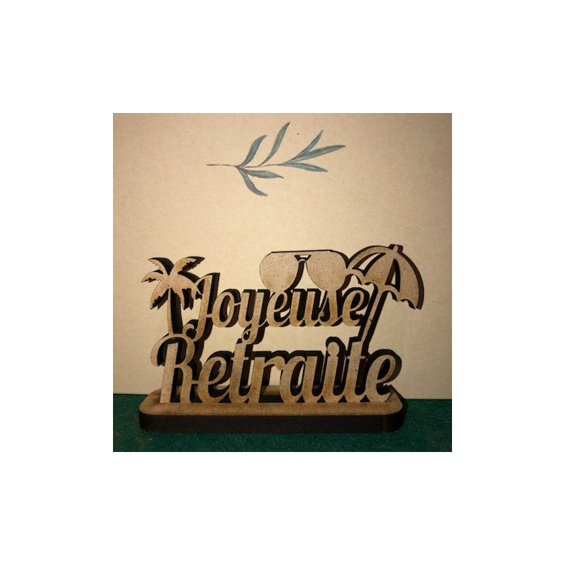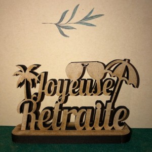 CENTRE DE TABLE - JOYEUSE RETRAITE x 3 (en bois sur support 9.8cm x 6cm)