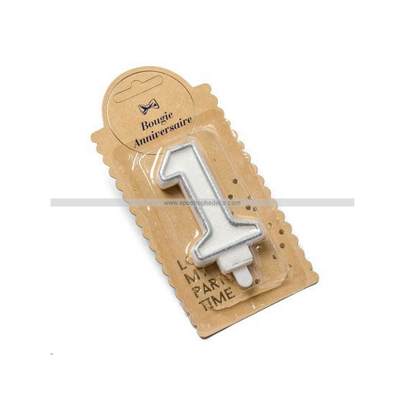 BOUGIE - Chiffre 1 argent (7,5cm)