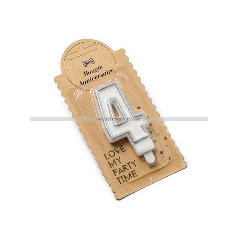 BOUGIE - Chiffre 4 argent (7,5cm)