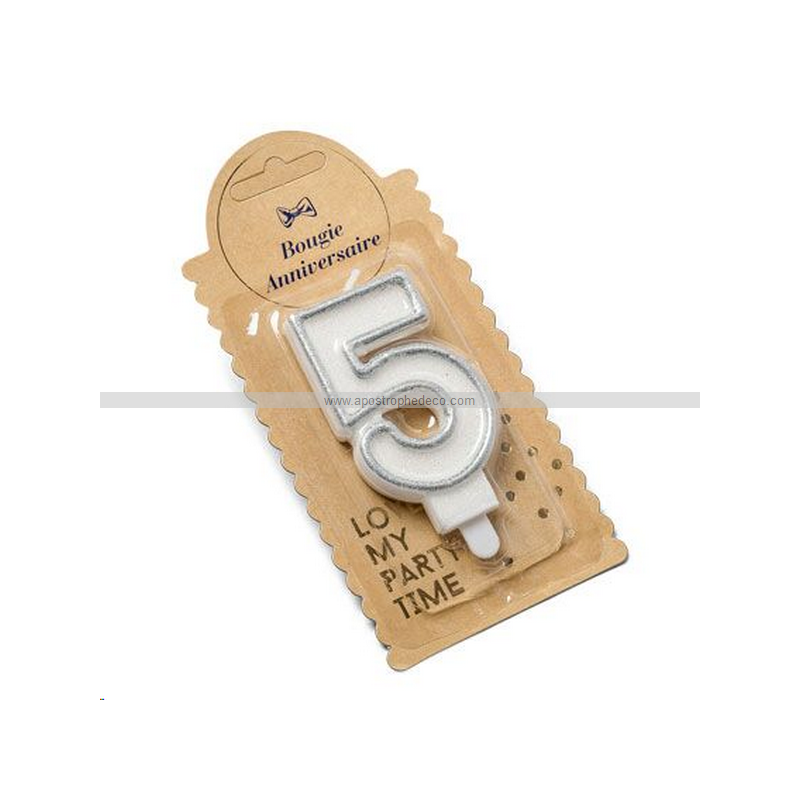 BOUGIE - Chiffre 5 argent (7,5cm)