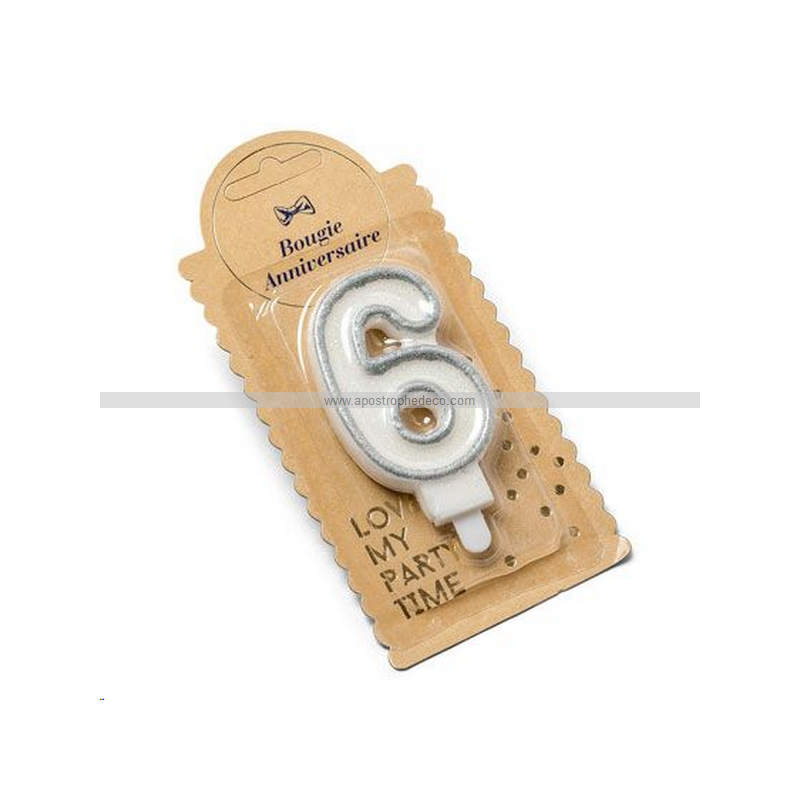 BOUGIE - Chiffre 6 argent (7,5cm)