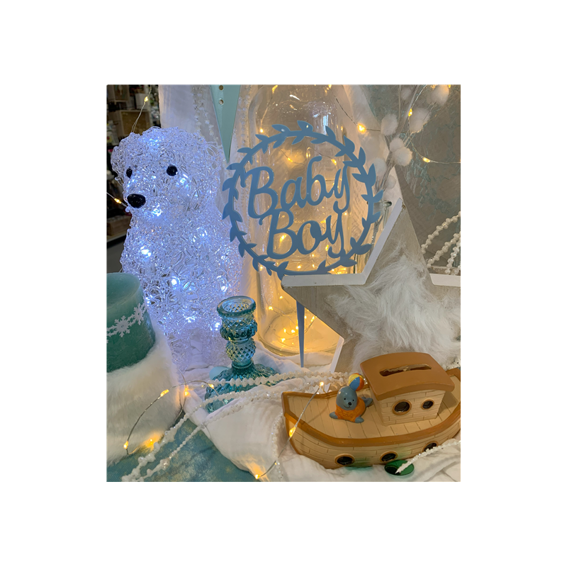 TOPPER - Couronne Baby Boy bleu pastel (en troglass 15cm x 25cm)