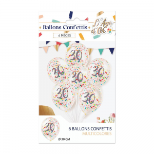 BALLON - Transparent confettis 30 ans x 6 (en latex 30cm)