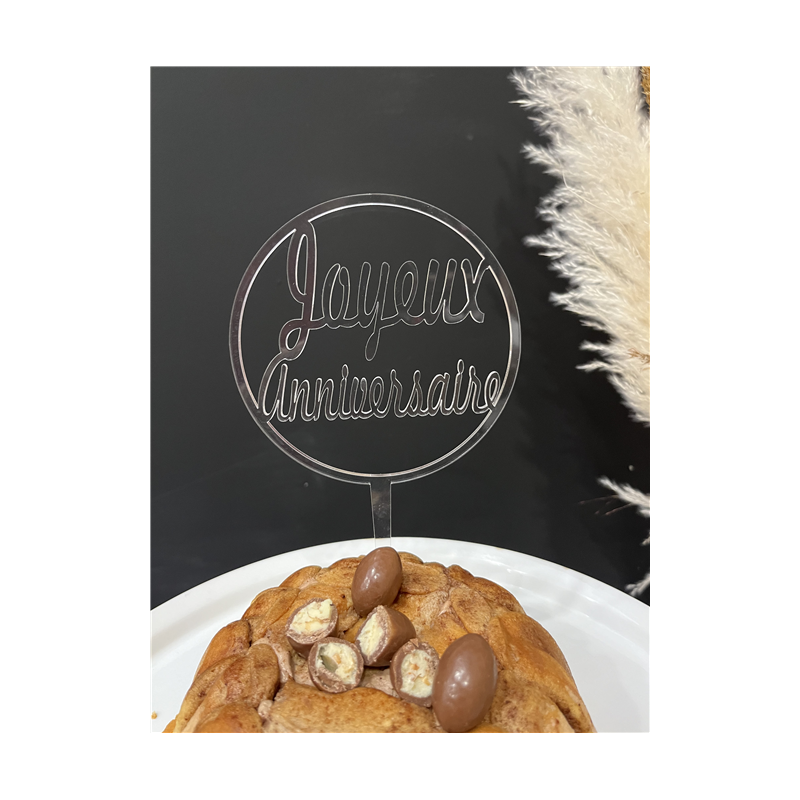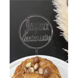 TOPPER - Joyeux anniversaire transparent (en troglass 12cm x 22.5cm)
