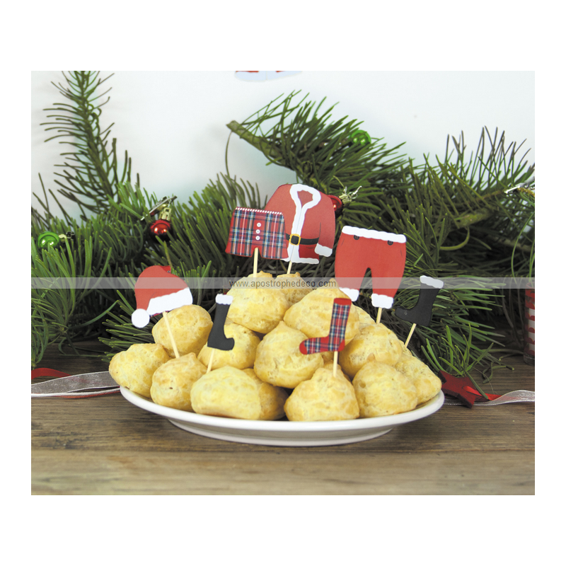 PIC A COCKTAIL/VERRINE - Habit de père noël x 8 (en carton 5cm)