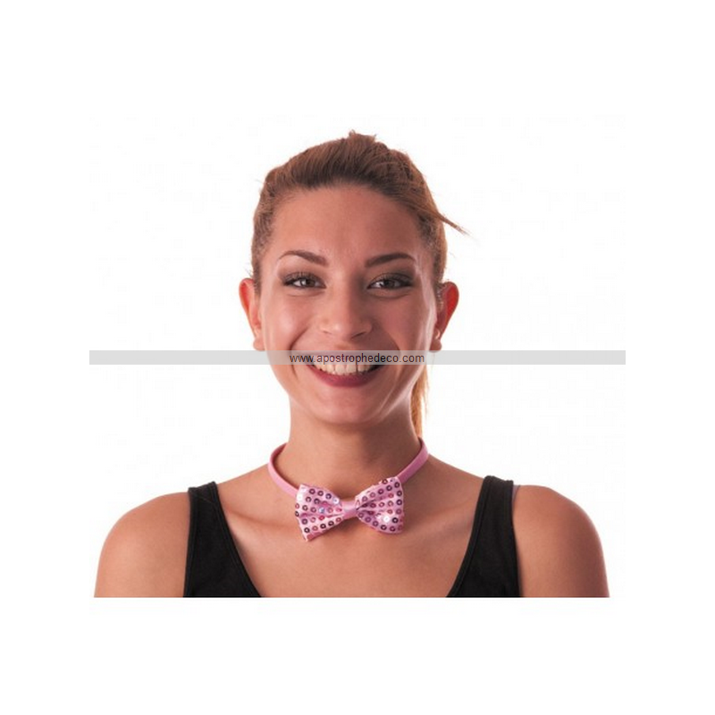 NOEUD PAPILLON - A sequin rose clair (élastique)