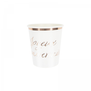 GOBELET/VERRE - Joyeux anniversaire blanc et rose gold x 8 (en carton 20cl)