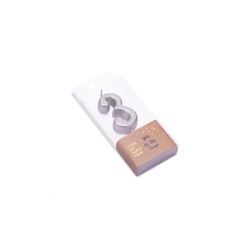 BOUGIE - Chiffre 3 argent (4,2cm)