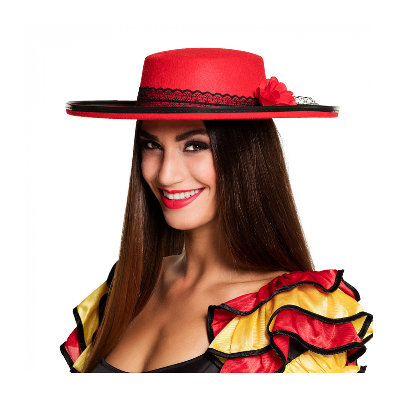 CHAPEAU - Espagnole/senorita rouge avec fleur (en feutre)