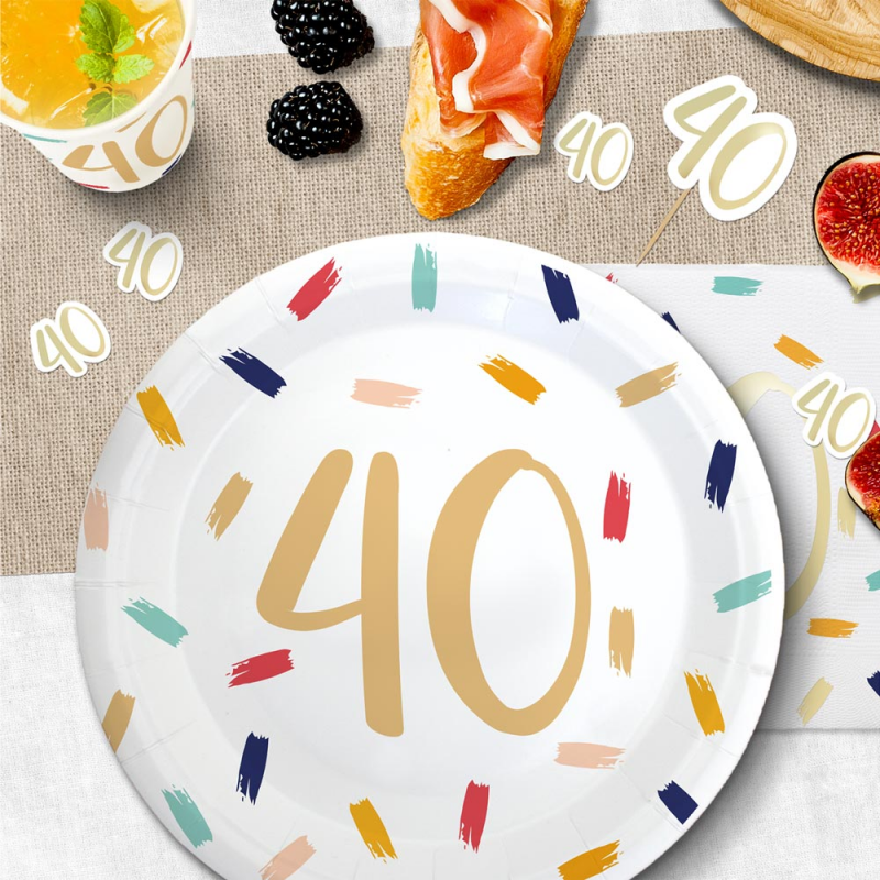 ASSIETTE - 40 confettis multicolore x 6 (en carton 23cm)
