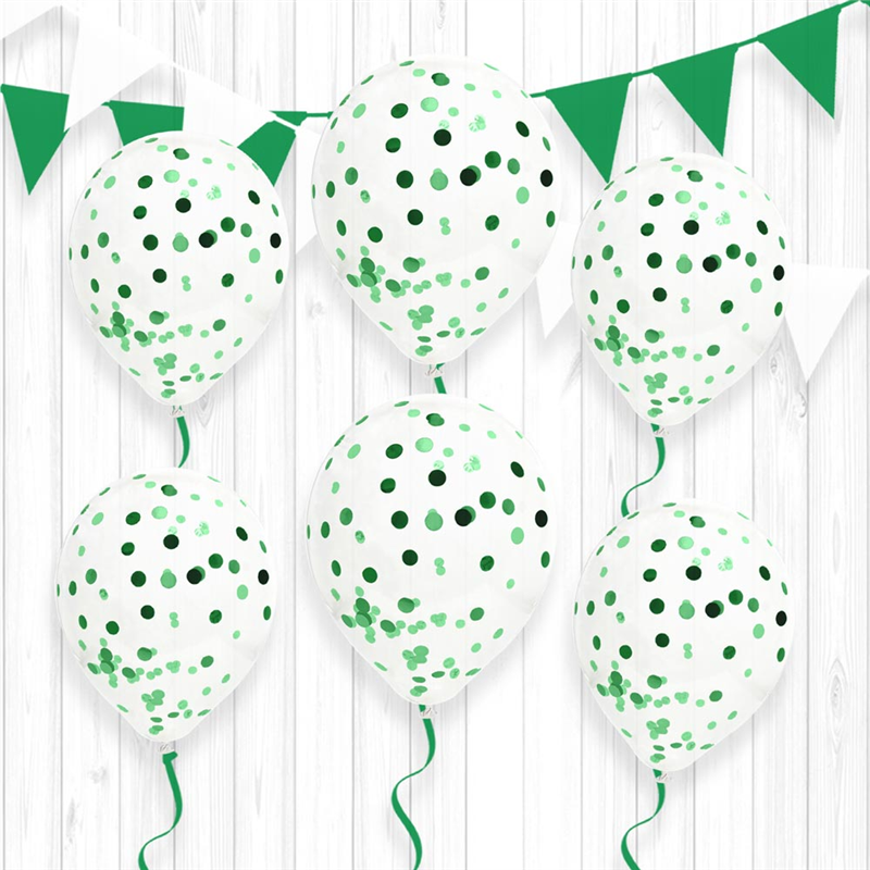 BALLON - Transparent avec confettis vert x 6 (en latex 30cm)