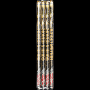 ARTIFICE - F2 - CHANDELLES ROMAINES X4 - Hauteur 10m - 7 Départs - Distance de sécurité 8m - Durée environ 20 secondes - Article ni repris, ni échangé Osez tirer la BAZOOKA® GOLDEN CRACK® et découvrez des comètes crépitantes or exceptionnelles !