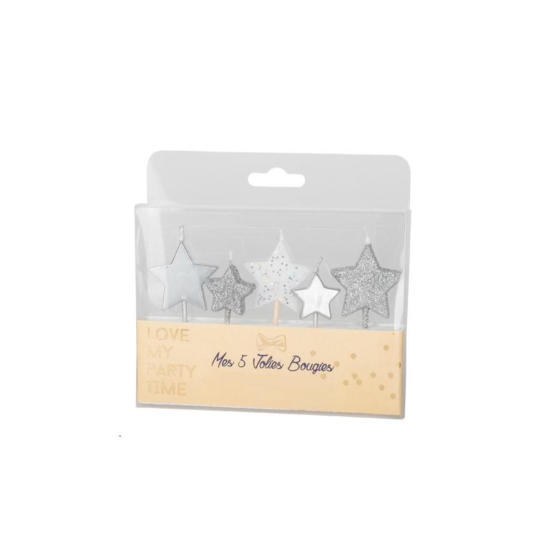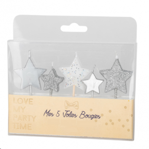 BOUGIE - Etoile argent et blanche x 5 (3 à 5 cm)