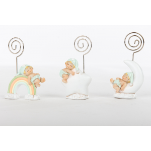 SUJET GATEAU/DECOR DE TABLE - Bébé avec porte nom (modèle assorti en résine 6cm)
