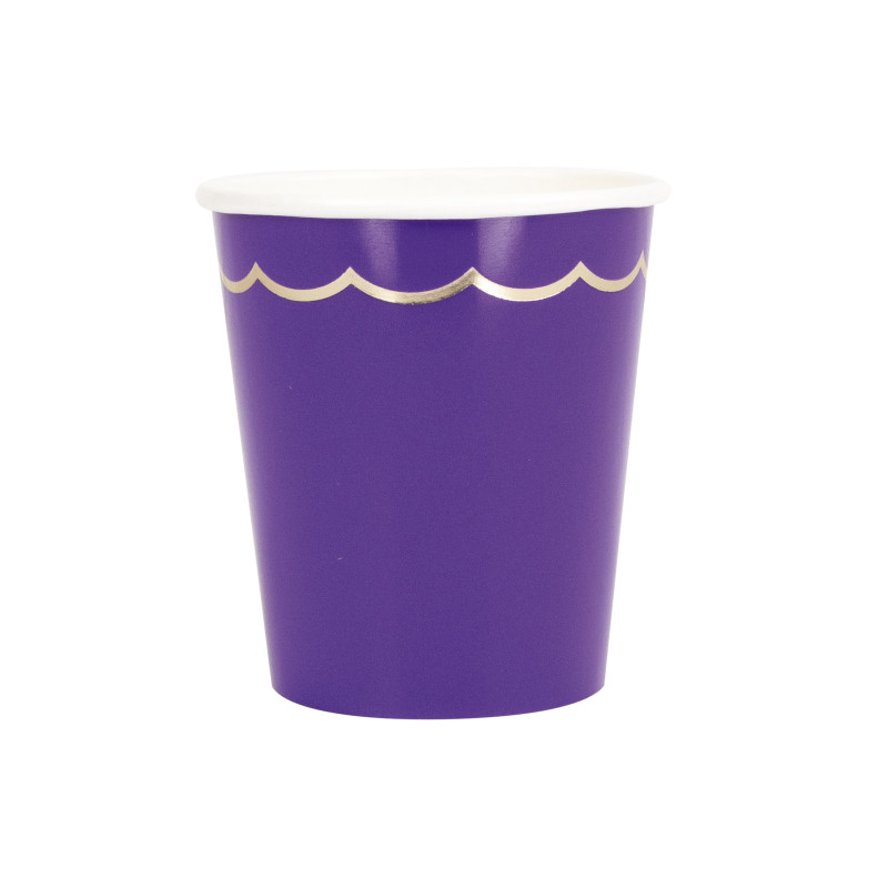 GOBELET/VERRE - Festonné violet avec bord doré x 8 (en carton 20cl)