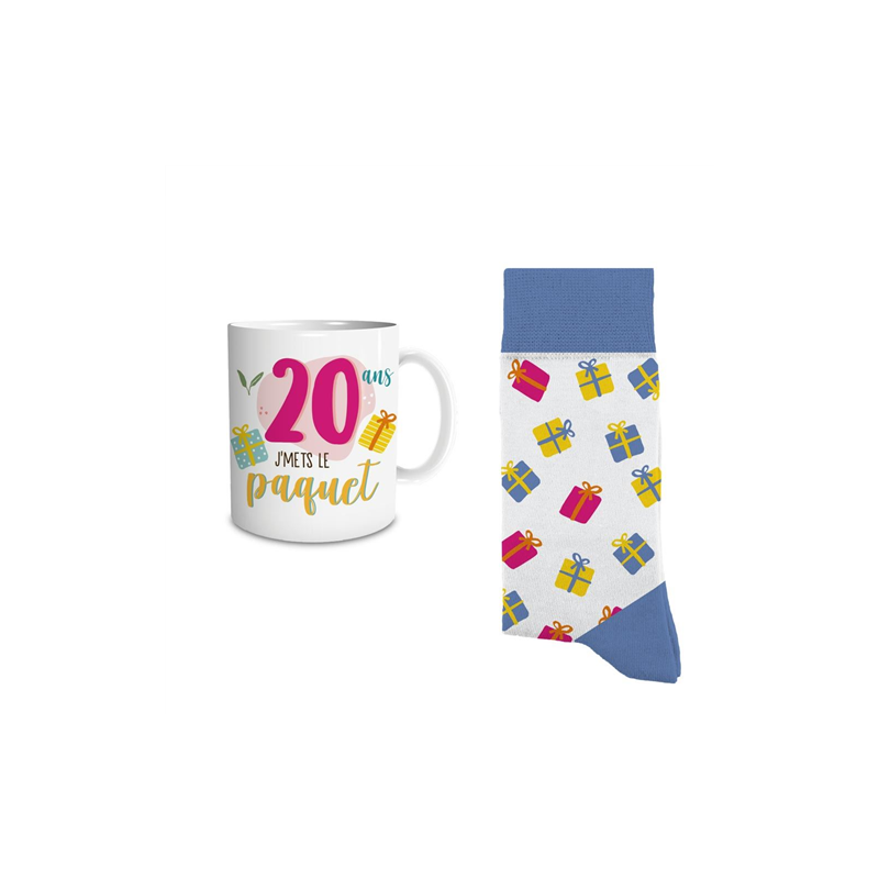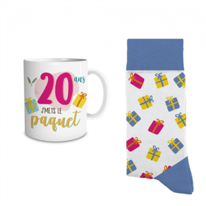 COFFRET CADEAU - Mug/tasse et chaussette 20 ans ( en verre )