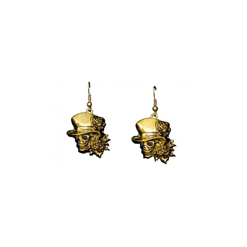 BOUCLE D'OREILLE - Gothique/tête de mort or/dorée x 2 (en métal)