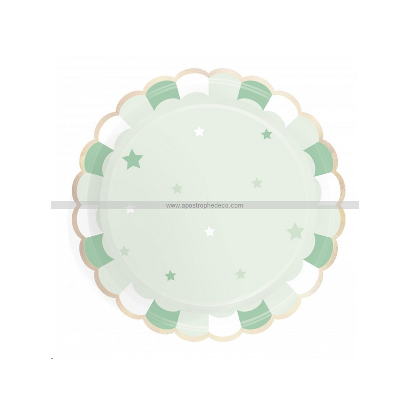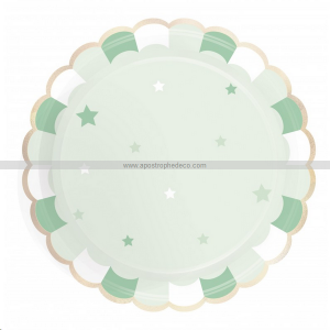 ASSIETTE - Festonnée vert pastel bord vert/blanc et doré x 8 (en carton 23cm)