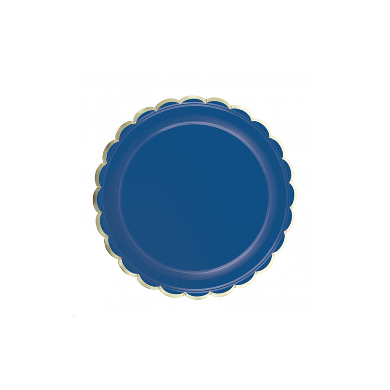 ASSIETTE - Festonnée bleu majorelle bord doré x 8 (en carton 23cm)