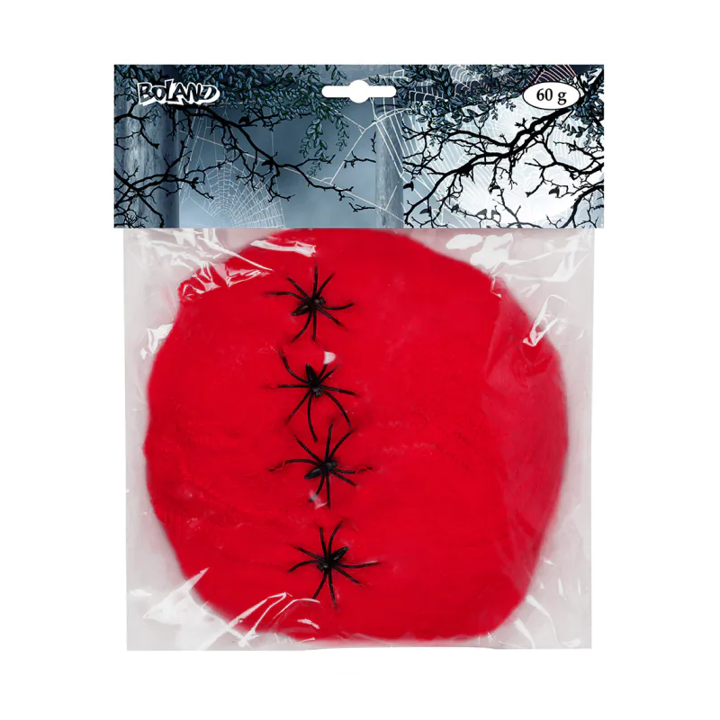 TOILE D'ARAIGNEE - Rouge avec 4 araignées (60gr)