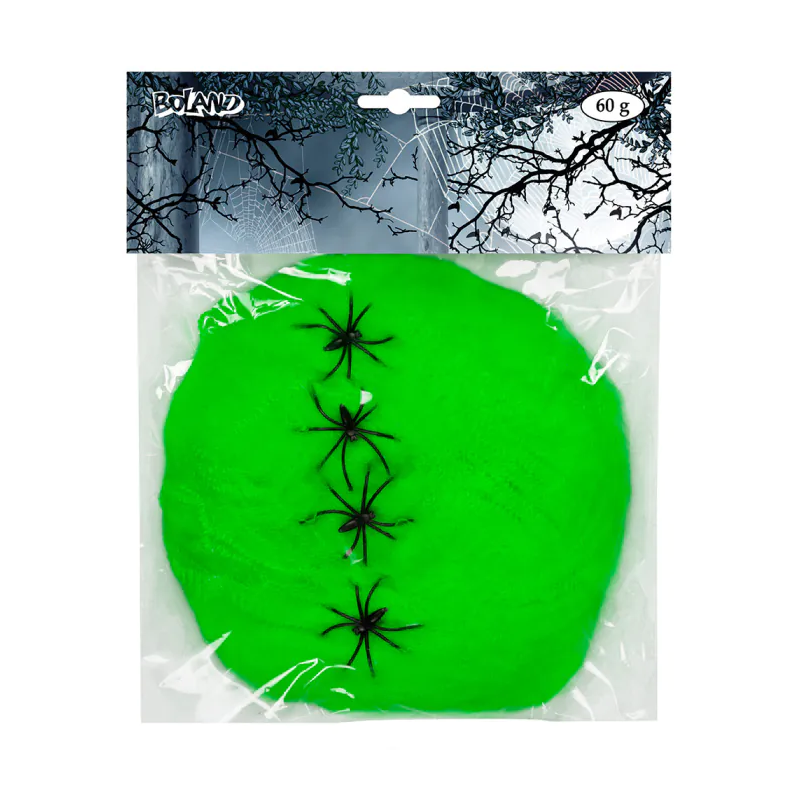 TOILE D'ARAIGNEE - Vert clair avec 4 araignées (60gr)