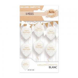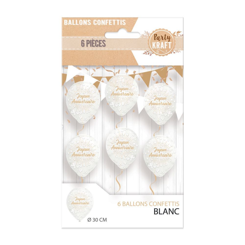 BALLON - Joyeux anniversaire avec confettis "collection kraft " x 6 (en latex 28cm)