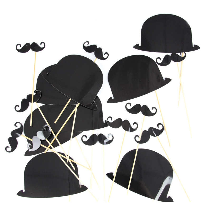 SET - Photo Party (10 Moustaches 21X7.5cm / 10 Chapeaux Melon 24X16cm)