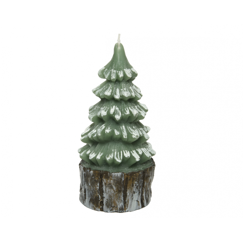 BOUGIE - Sapin enneigé sur tronc (17cm)