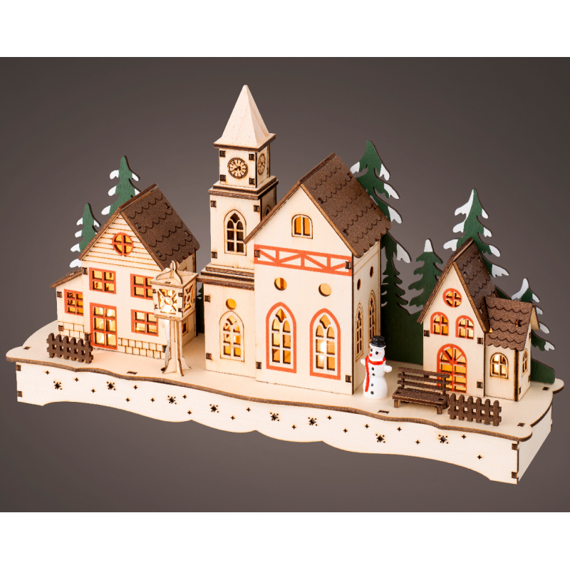 DECOR DE NOEL - Village lumineux (en bois 30cm)