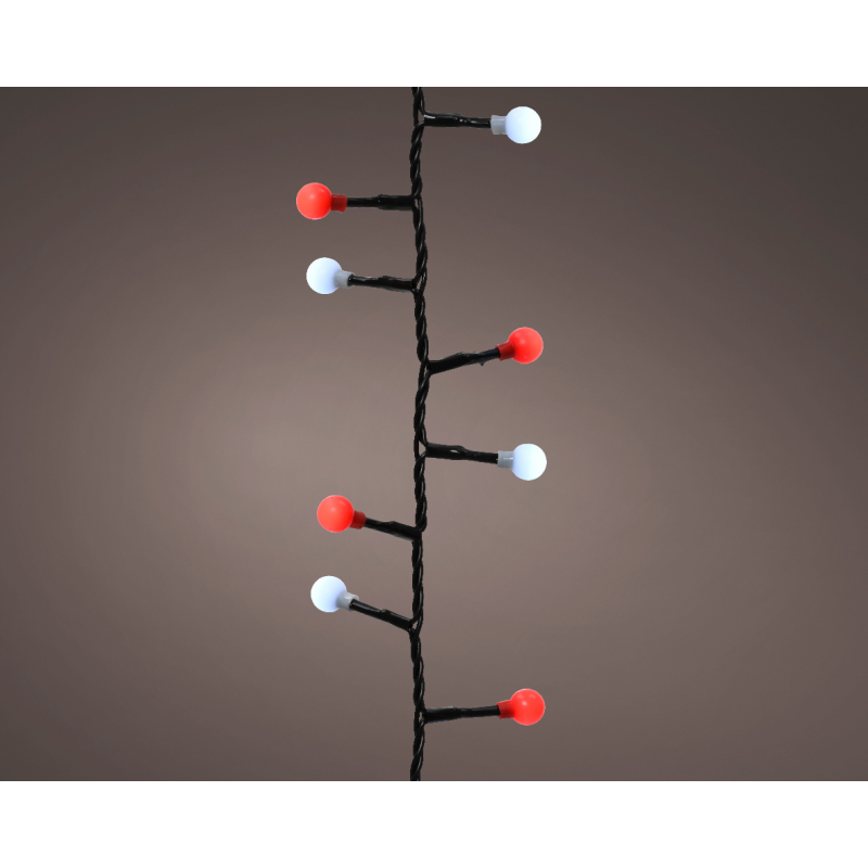 GUIRLANDE LUMINEUSE - Cerise rouge et blanc/Fil noir étanche (11m 500 leds)