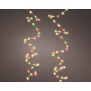 GUIRLANDE LUMINEUSE - Microled or, rouge et vert / fil argent ETANCHE