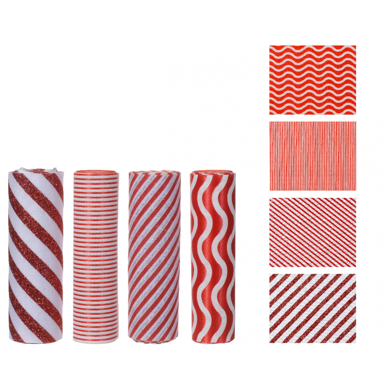 RUBAN/CHEMIN DE TABLE - Assortiment candy rouge et blanc (14cm x 2m)