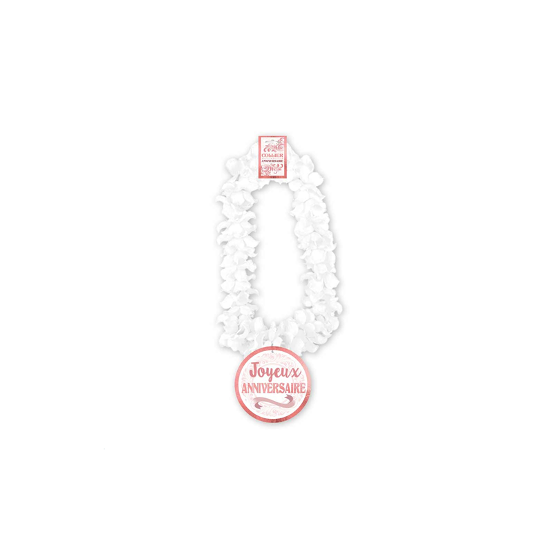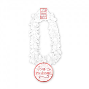COLLIER DE FLEURS/HAWAI - Joyeux anniversaire rose/blanc