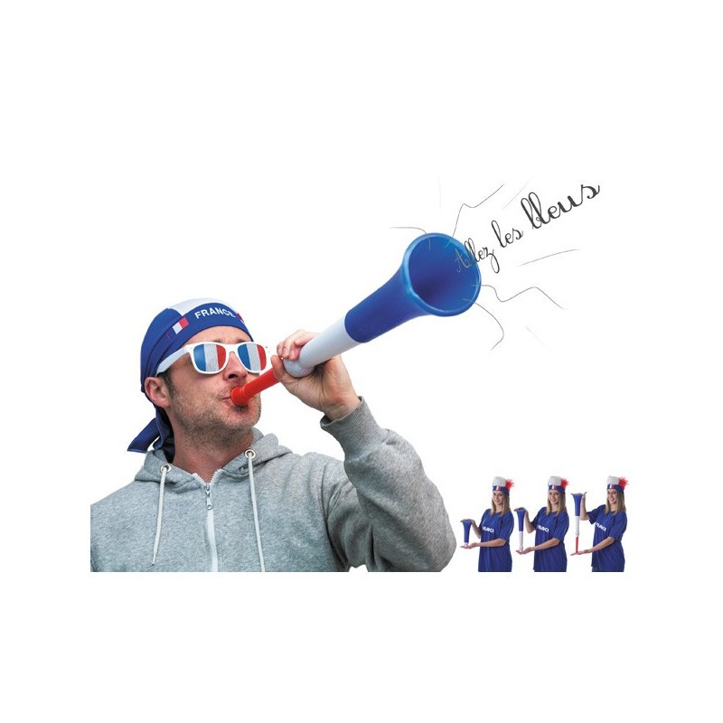 TROMPETTE/VUVUZELA - Porte voix bleu/blanc/rouge (en plastique)