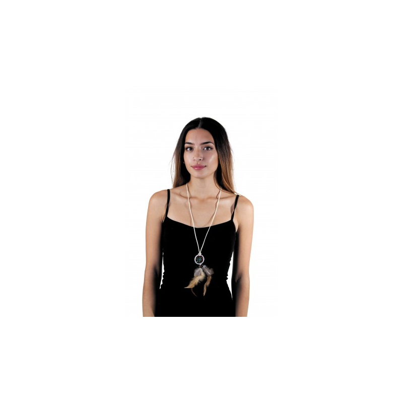 COLLIER - Indien/ Attrape rêve avec perle et plume