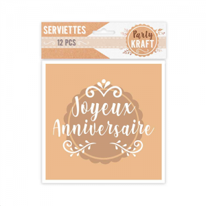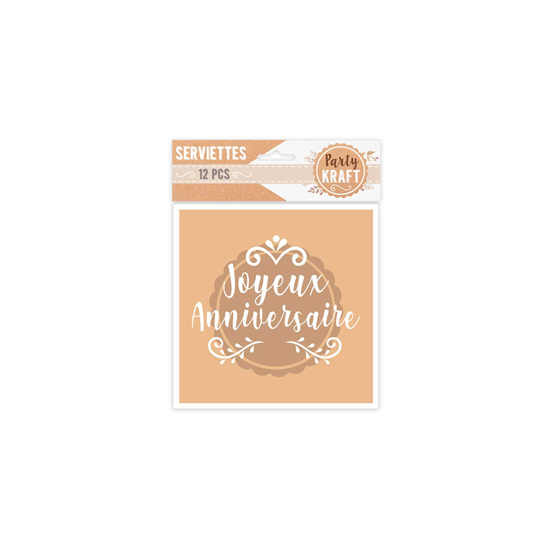 SERVIETTE - Joyeux anniversaire kraft x 12 (33cm x 33cm)